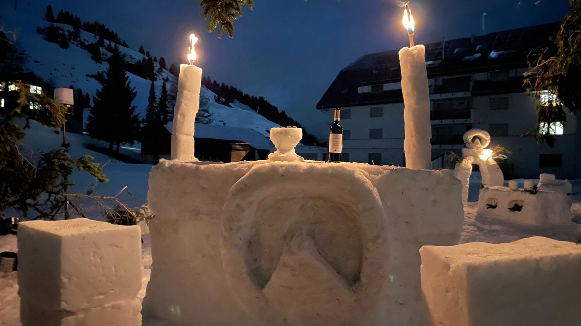 Building a snow bar is not only a creative winter activity, but also creates a cosy get-together with the team afterwards. For a change, you can make a delicious mulled wine in the open air over the fire. Of course, this is also tasted immediately as a reward.