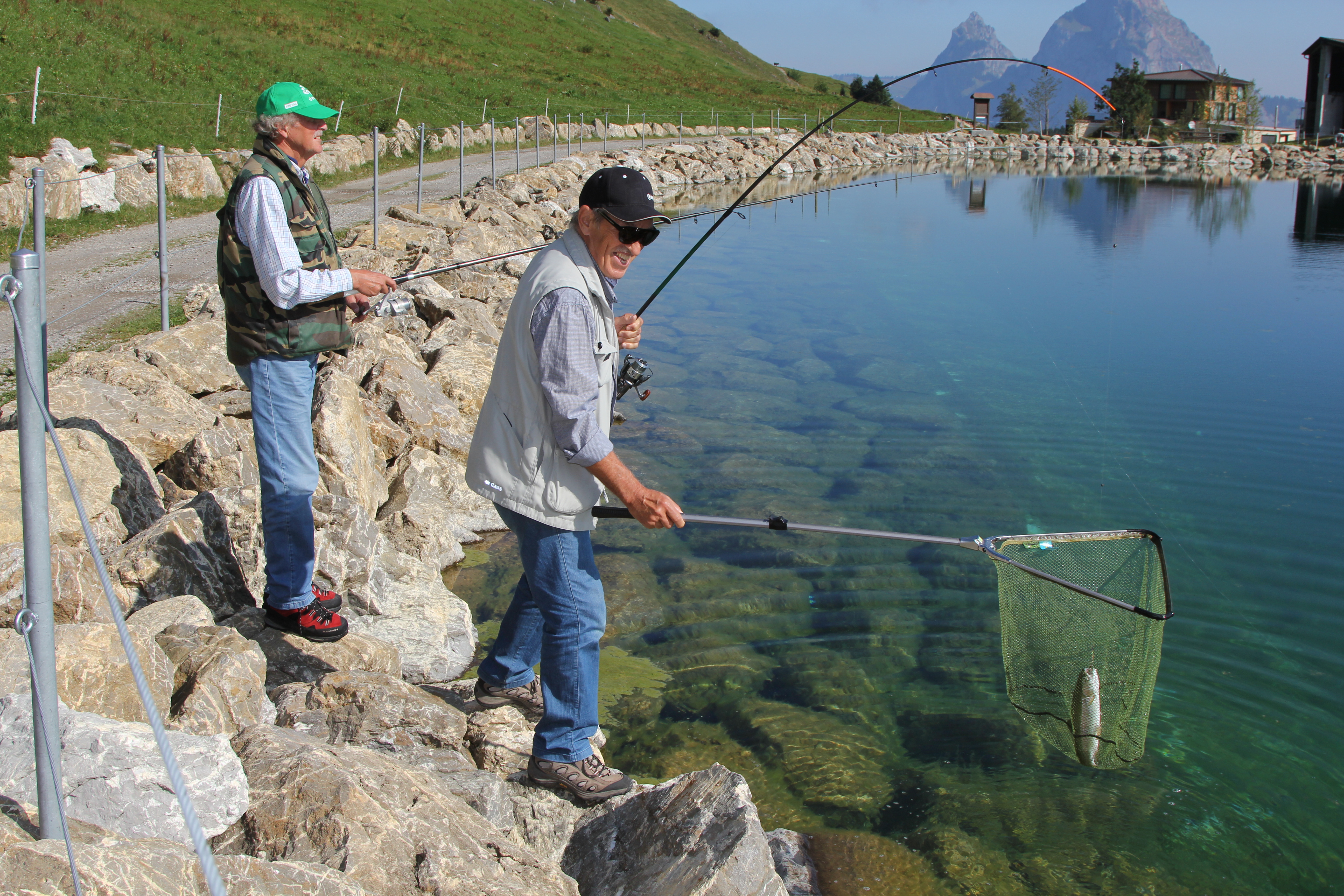 You can also pay by TWINT (look at the board at the pavilion at Seeli). 1 fish (approx. 400g) CHF 10.00 and a large fish (approx. 2.5kg) CHF 60.00.
