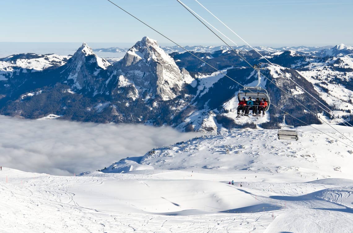 After a short walk through the mountain village, you can take the two chairlifts from Stoos up to the Fronalpstock summit in around 20 minutes.