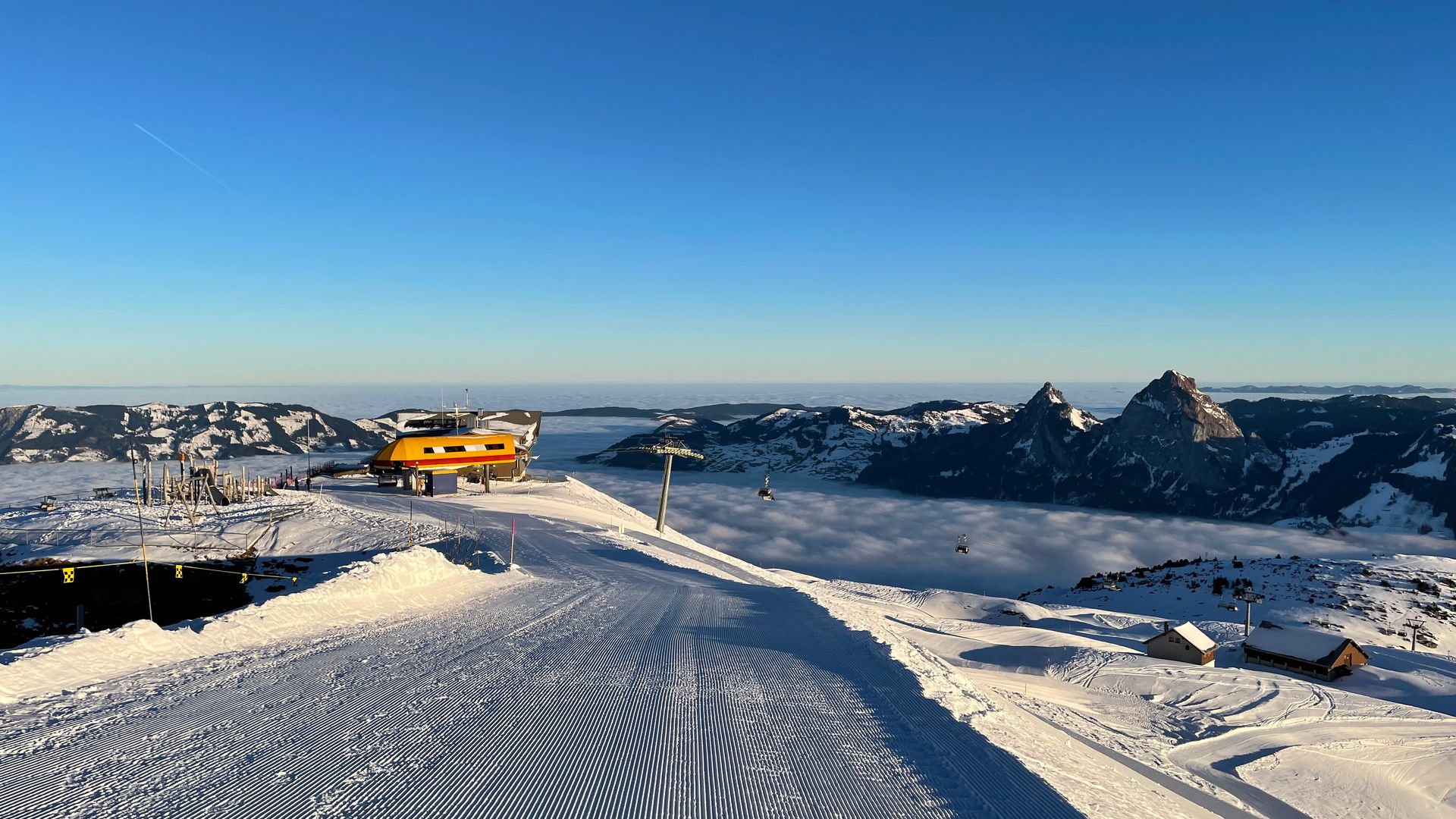 The leisurely walk, which is suitable for all-terrain pushchairs, is relatively flat and leads back to the Fronalpstock Hotel | Restaurant, where free brochures with information about the trails on the Stoos are available at the Stoos cable car stations. The little ones can have fun on the large playground or romp around with the dwarf goats. The picnic possibility at the playground and various resting places on the summit invite you to linger.