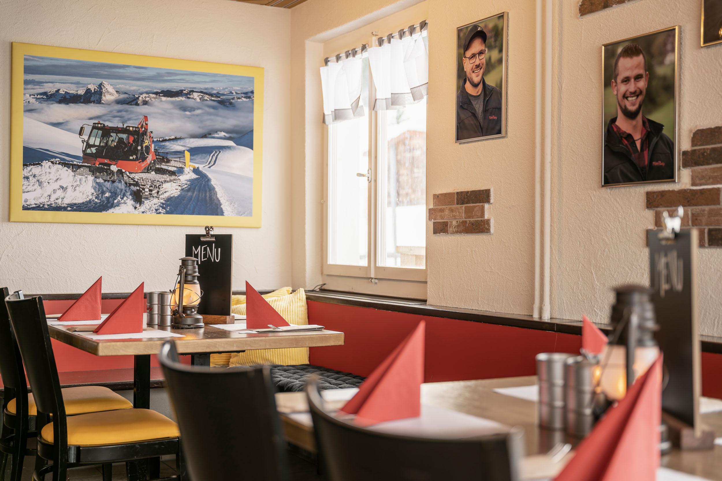 "It's easier to be different than to do 0815 well." This applies exactly to the "PistenBully Beiz Brunnerboden" at the valley station Klingenstock. The new host family Stefanie and Michael Beetschen spoil you, together with their team, completely according to the principle: uncomplicated-down-to-earth-simply different. The culinary offer as well as the ambience is geared towards the "heroes of the night" and their Pistenbullys - the ultimate pit stop for Pistenraudis, pedestrians and all other snow-loving guests.