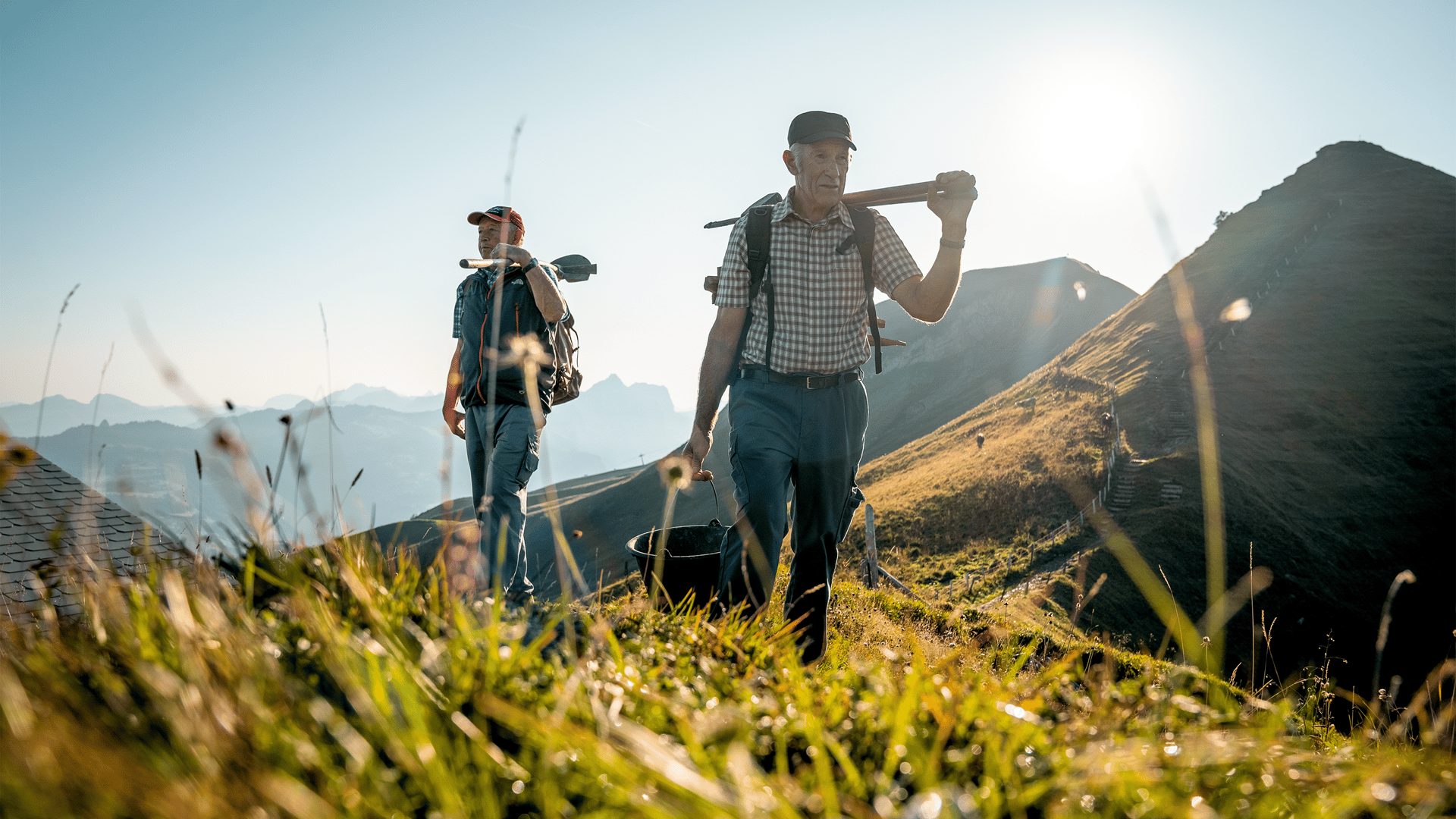 For 15 summer seasons Sepp has been working on the ridge walk, in the beginning there were two of them, now there are seven. The chances to meet Sepp are good: on about 30 days (250h) he and his team are in action. The thanks and appreciation of the hikers are a great joy for the hard-working hitchhikers. Sepp is also happy about being outside in the beautiful weather, about the good progress on projects and also about the fact that there has never been a serious accident during the maintenance work.