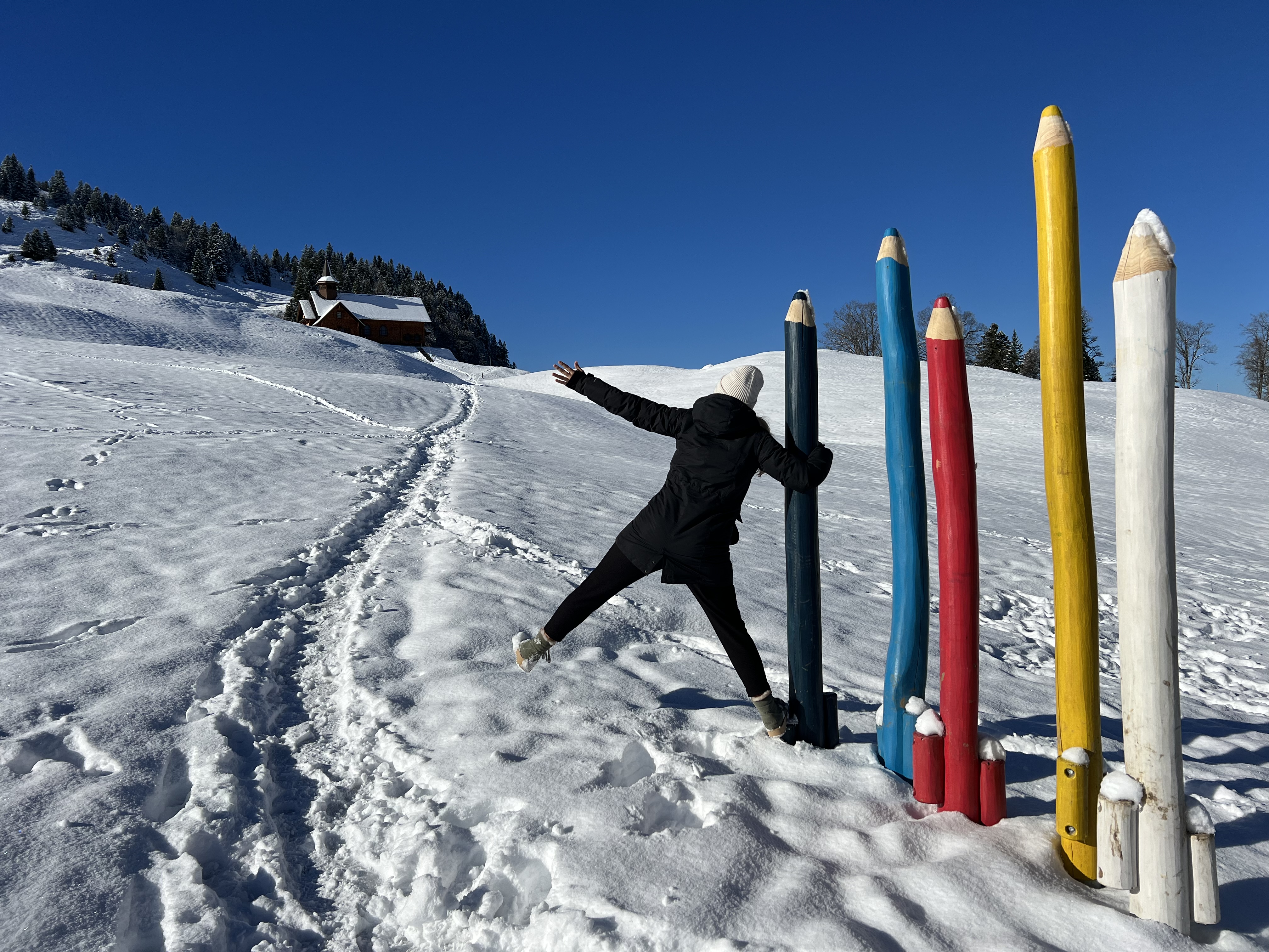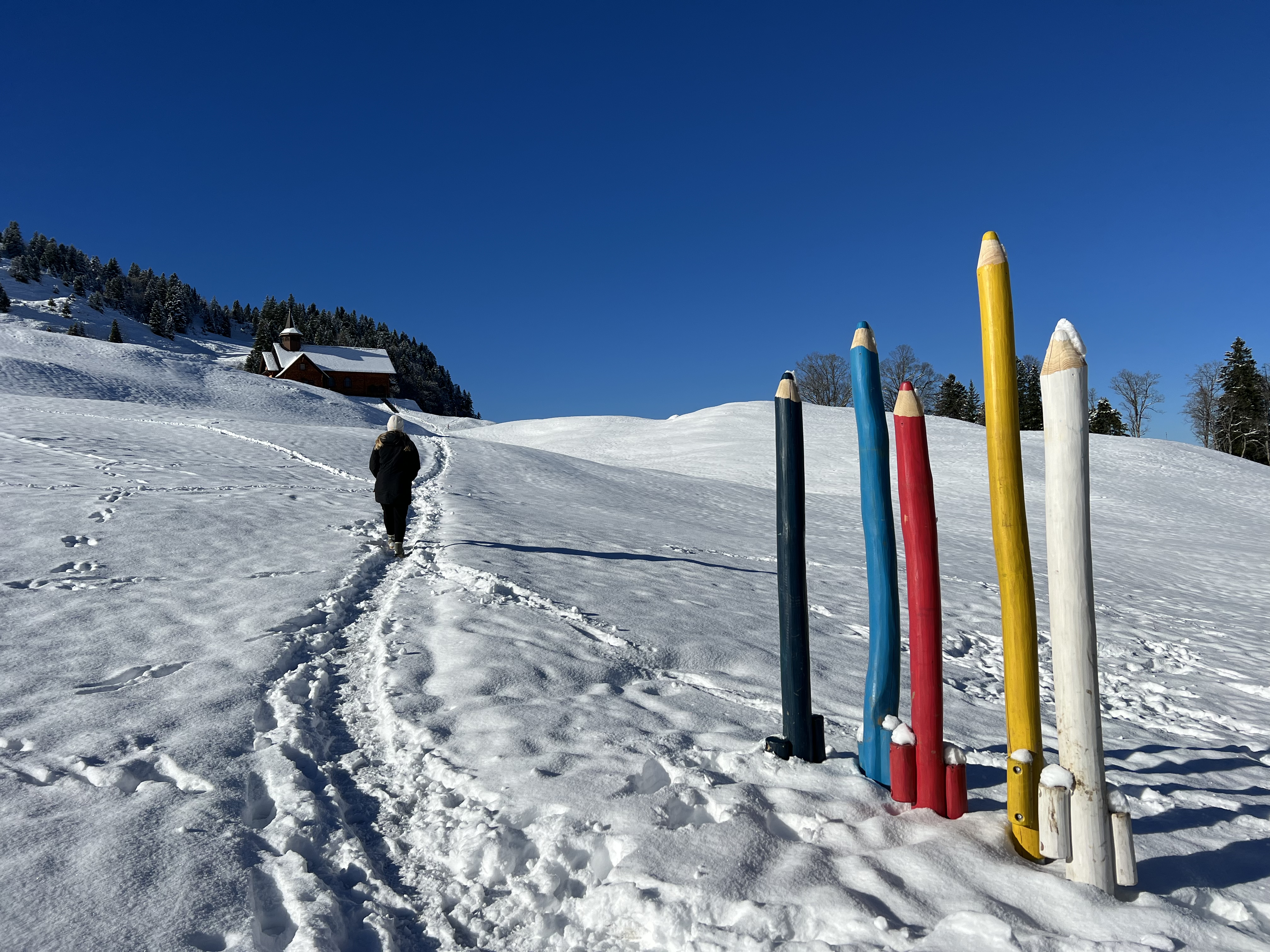 The Stooshorn round offers around 2.8 km of attractions for fun and games at various waypoints. For example, flying through the air on the giant swing makes children's eyes sparkle. In addition to the playful elements, boards with QR codes can also be found along the trail. Various short stories can be listened to via cell phone, in which you can learn more about the past and immerse yourself in the history of Stoos. The unique adventure trail is also accessible with all-terrain strollers. In winter, the Stooshorn circuit can also be experienced for the most part.