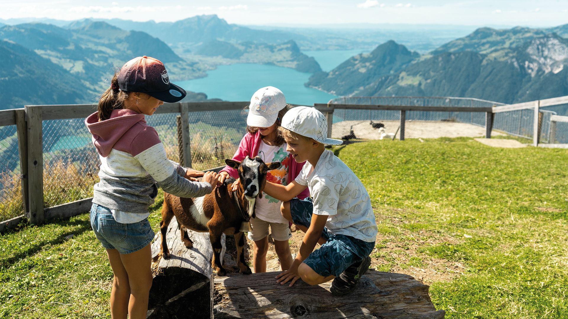 While the adults discuss which is Pilatus and which is Rigi, the children stroke the goats in the pasture. So the family outing is fun for everyone.